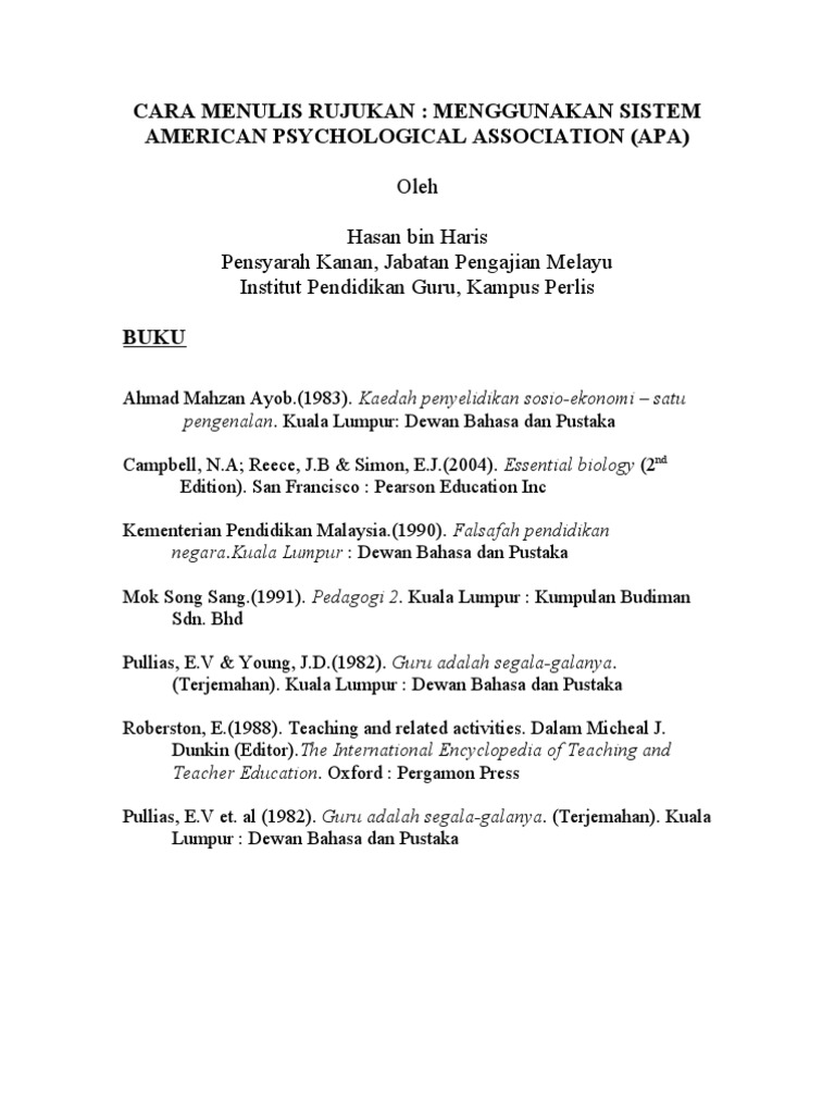 Kaedah Rujukan Apa from imgv2-2-f.scribdassets.com Cara menulis daftar pustaka dari jurnal. Memang menulis daftar pustaka bukanlah perkara yang mudah, terlebih lagi jika kamu tidak pernah mencobanya sama sekali. Sumber tulisan yang dapat kita jadikan sebagai bahan rujukan untuk menulis suatu karya ilmiah bisa berasal dari jurnal, buku adapun cara menulis footnote dari sumber yang berbeda juga memiliki teknik penulisan yang berbeda. Menulis rujukan jurnal yang dimuat. Tidak perlu diasingkan bahan sumber rujukan buku, jurnal, kertas seminar, tesis, dai & akhbar 11. Umumnya daftar pustaka teridir anatar 5 unsur, yaitu penulis mengutip informasi dari jurnal dengan nama jurnal pendidikan volume 2 nomor 1 tahun 2012. Untuk mahasiswa s1 dan s2 yang sedang mengerjakan tugas akhir. Nama penulis ditulis paling depan diikuti dengan tahun dan judul artikel yang dulis dengan cetak biasa, dan huruf besar bagaimana cara menulis kutipan langsung dari internet?