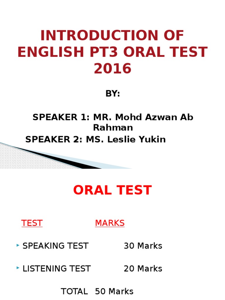 Ujian Lisan Bahasa Inggeris Pt3 2016 / Apks >> education >> ujian lisan pt3 bi.